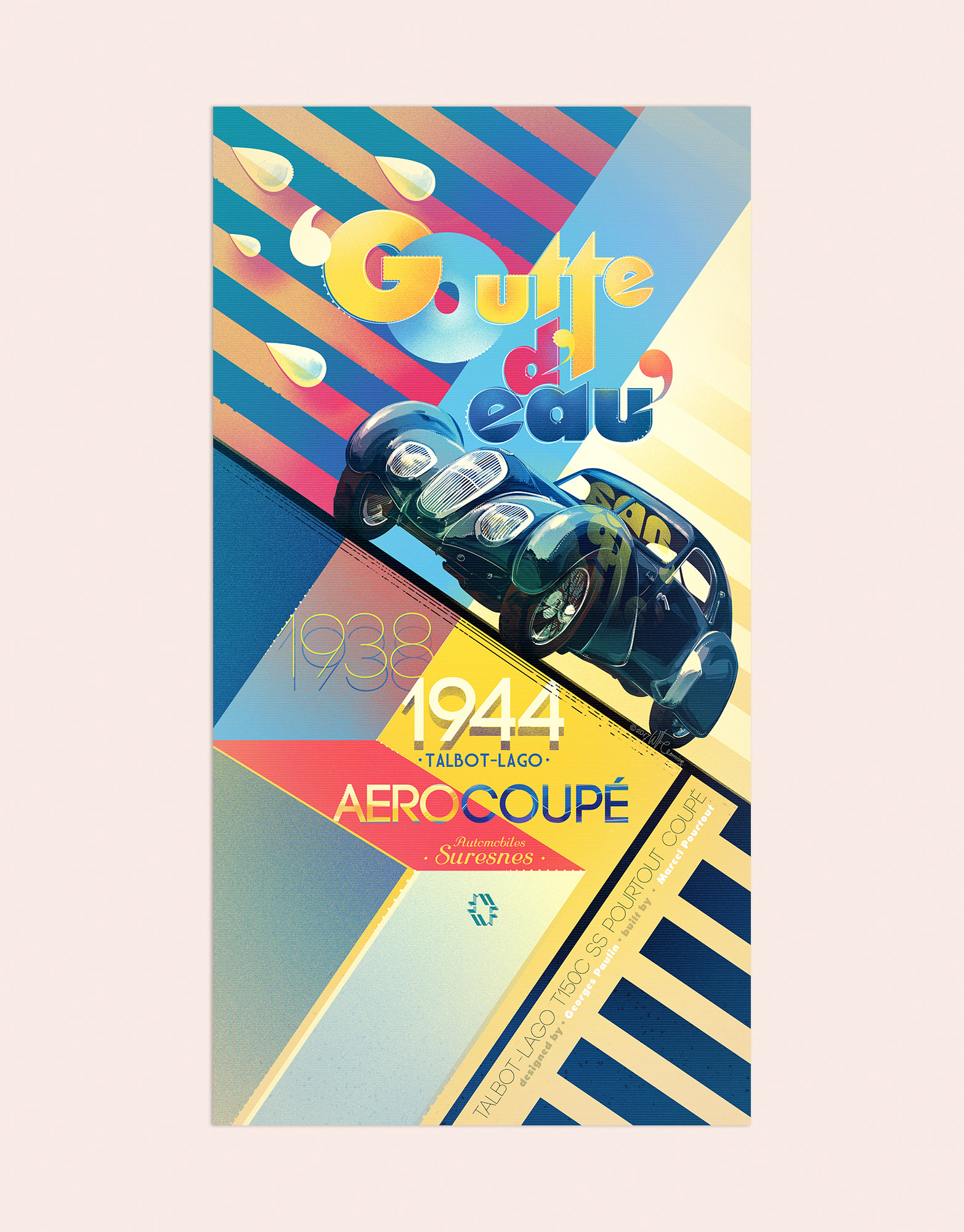 art deco car poster illustration