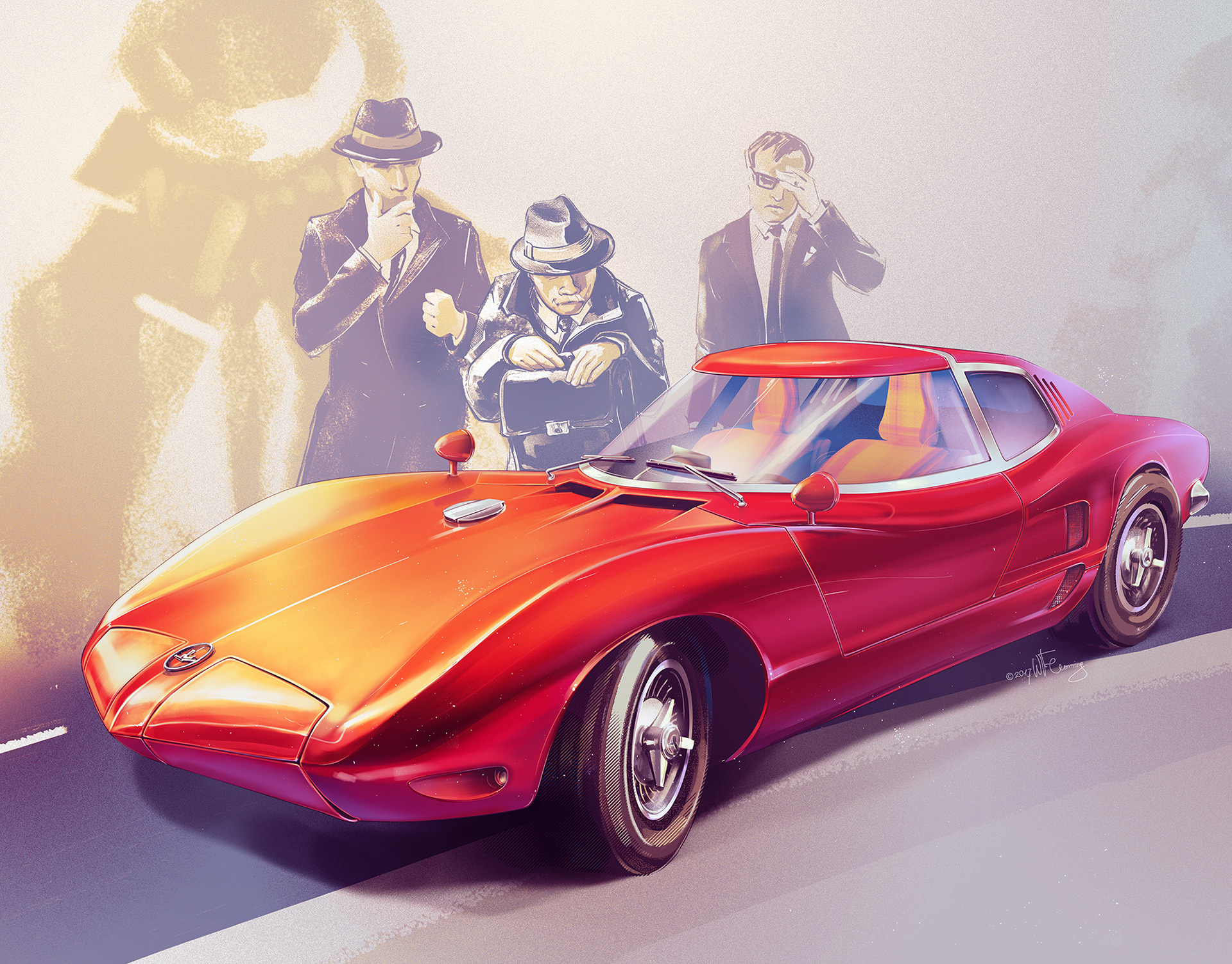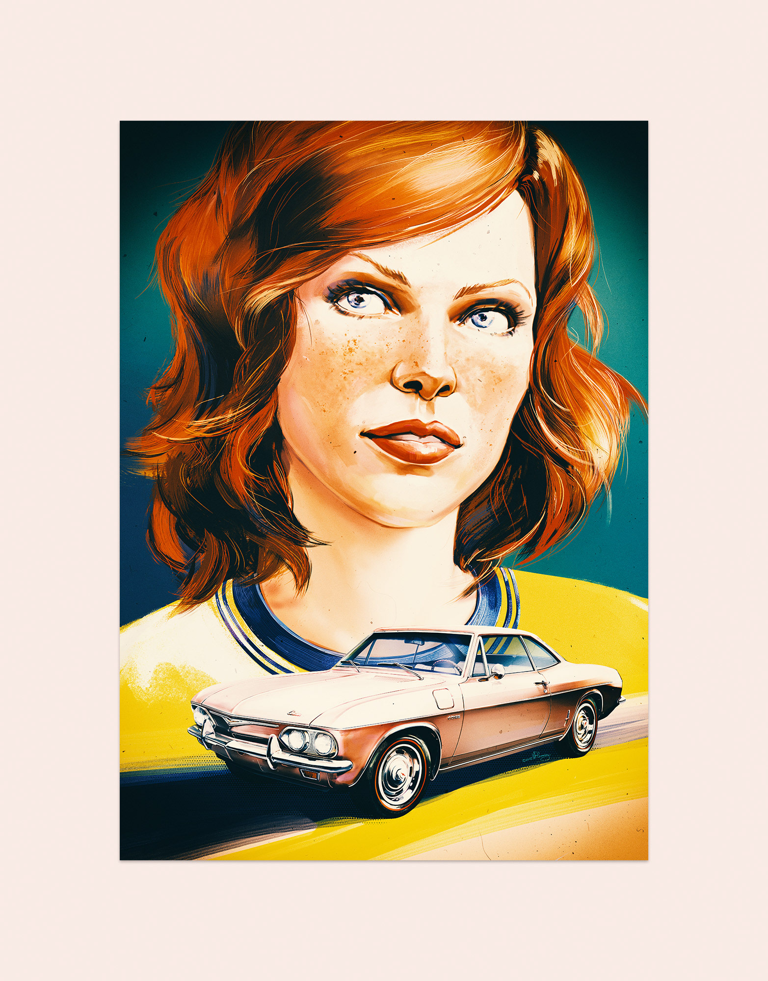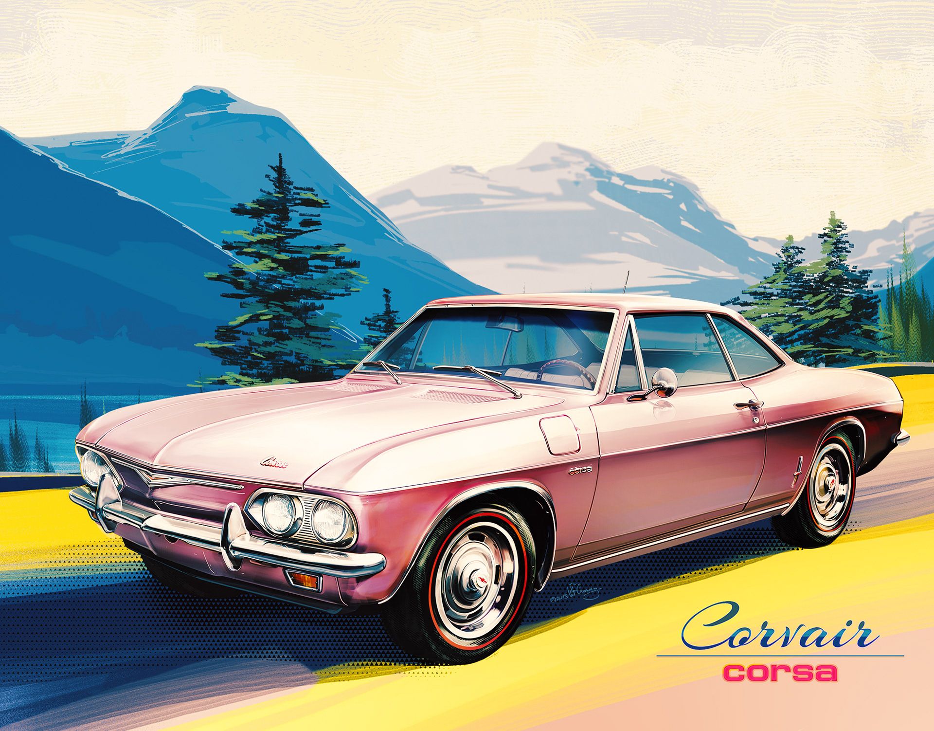 Retro automotive posters inspired by a story of Corvair concept car - a car that never really happened.